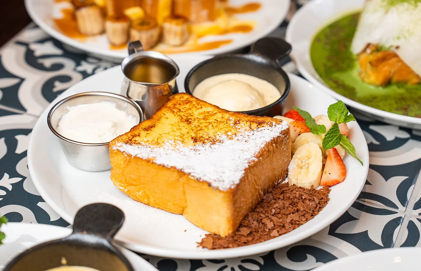 香り豊かなフレンチトーストを主役に、前菜からサイドまでバランスよく楽しめます。甘さと食事感の両方を楽しみたい方におすすめの、満足感のあるフレンチトーストセットです。